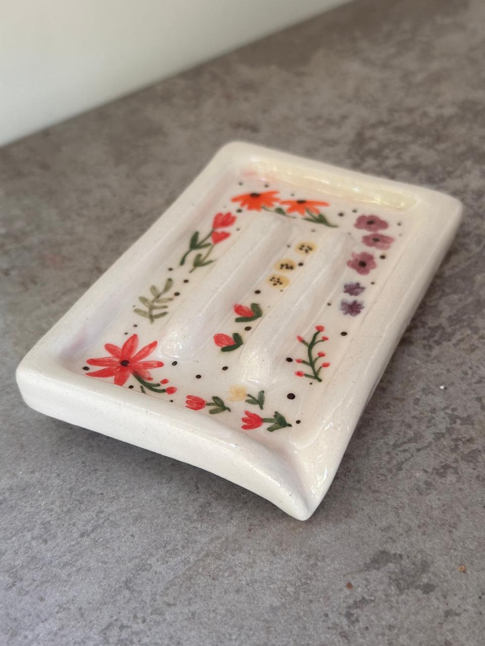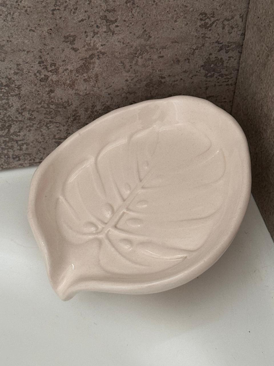 Gracias a este pedido nacieron las jaboneritas con pie. Tuvimos este pedido de jabonera en forma de hoja con pendiente para que pueda drenar el agua que queda acumulada en el jabón y decidimos continuar haciendo esta maravilla
