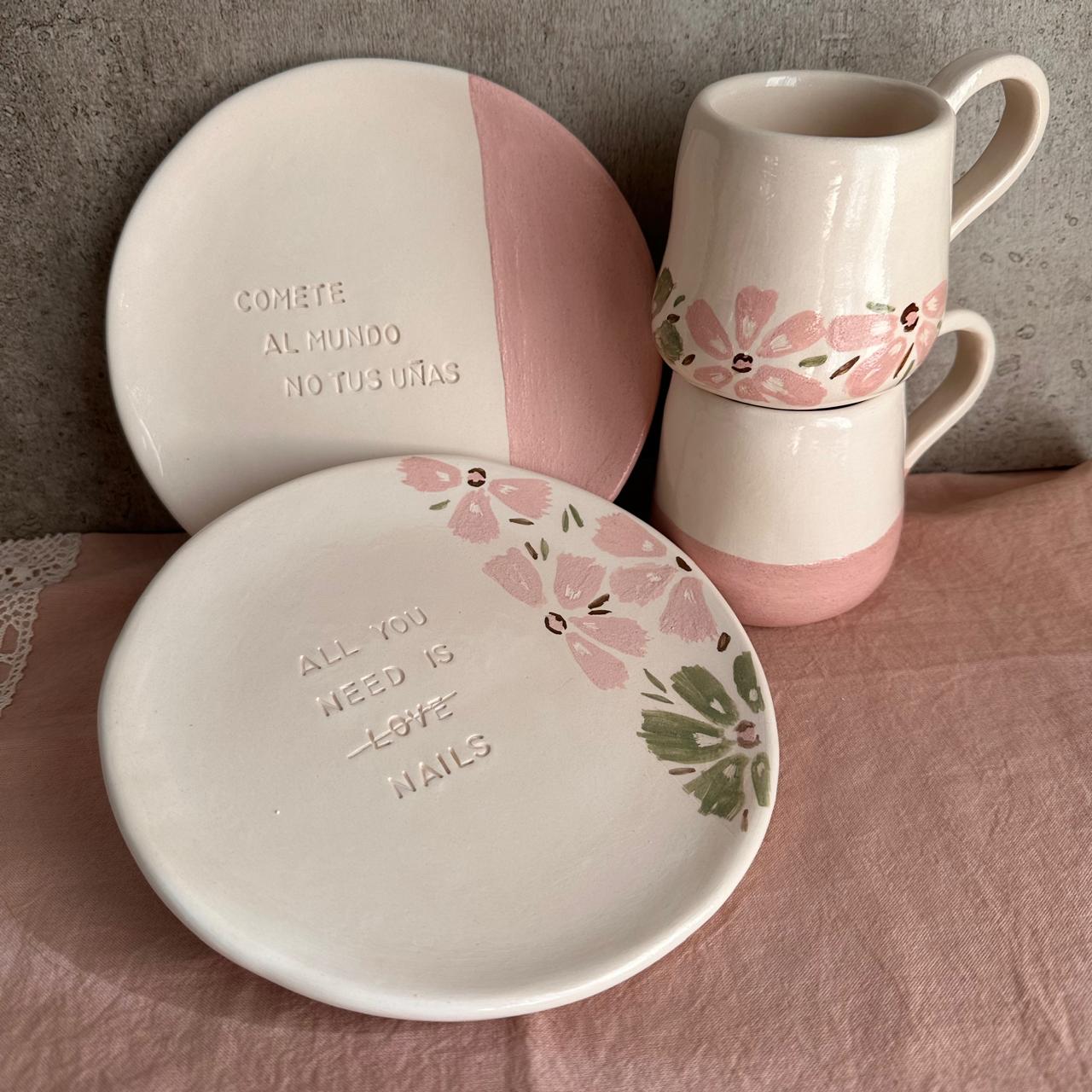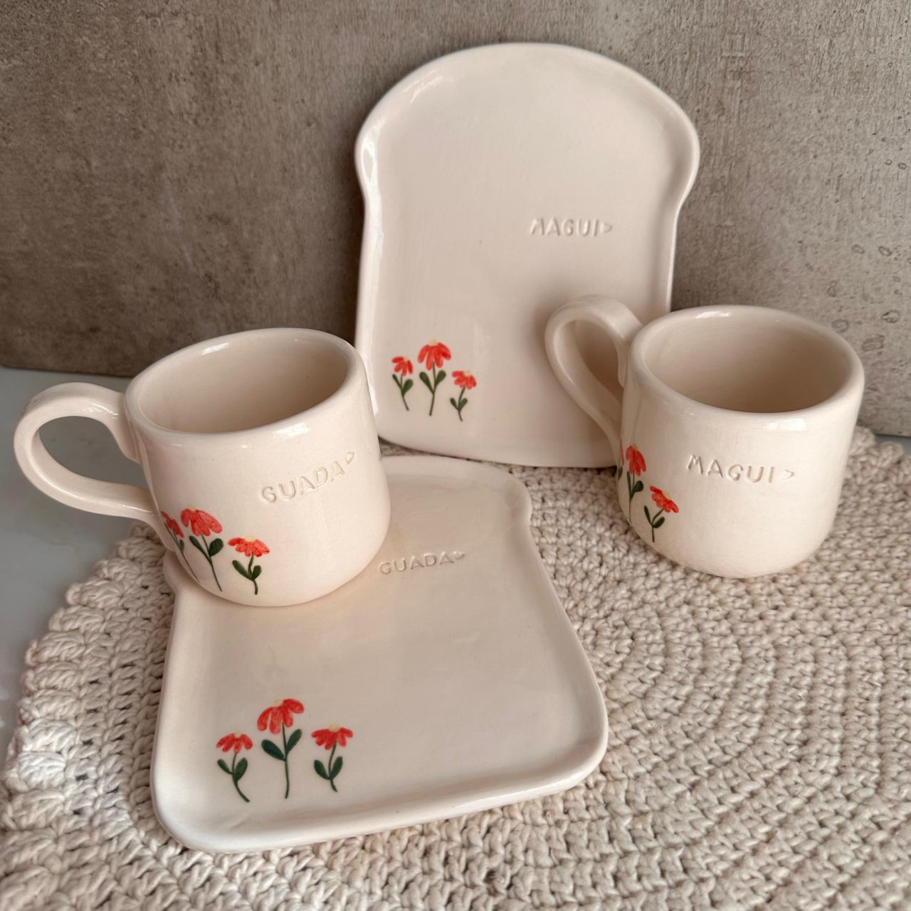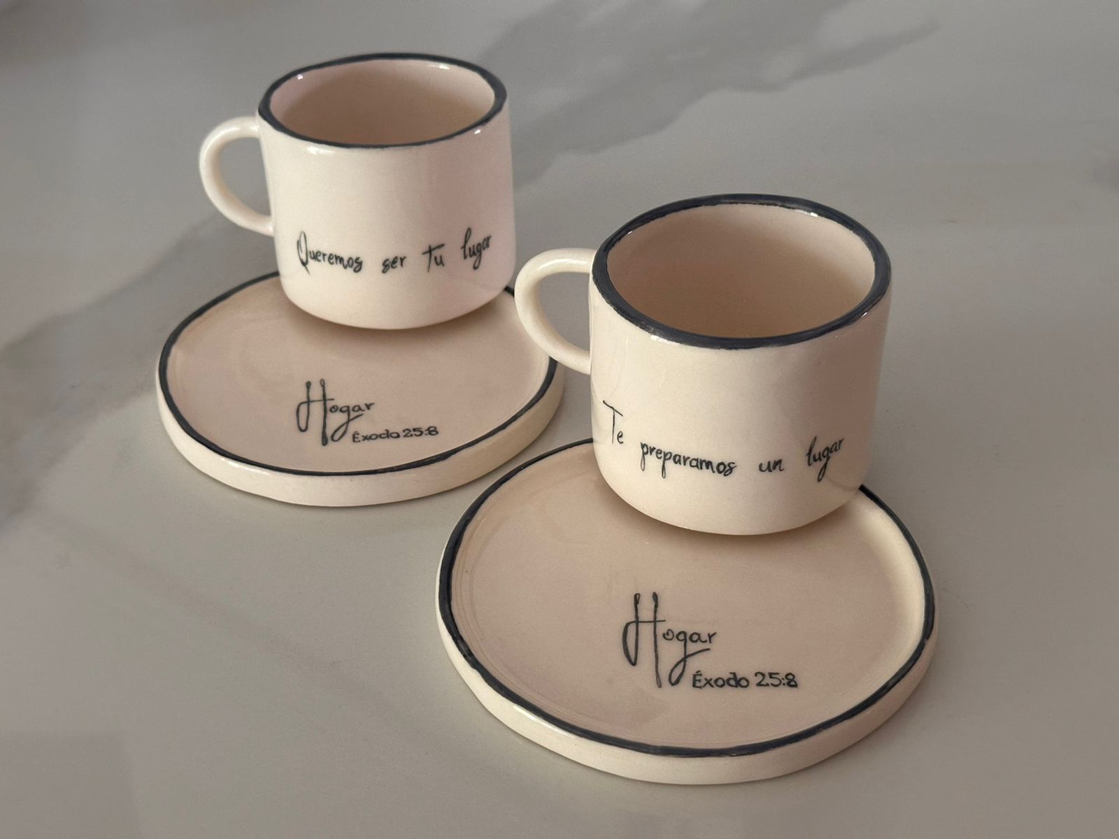 Tazas y platos con escrito, con un sentido muy especial ♥
